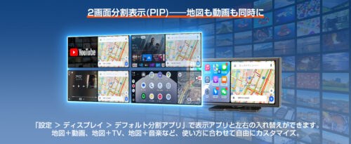 - 2画面分割(PIP)で地図も動画も同時に見れる