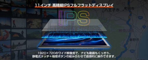 11インチの大画面ディスプレイを採用し、地図や映像、アプリ操作が一目で見やすく快適。
