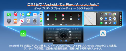 本機は独立型ポータブルディスプレイオーディオとして動作し、画面上でそのままスマホ連携が使えます。